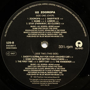 1993 Island Records U29 original with inner bag